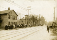 Flood refugees waiting in line at relief stationDayton residents wait in bread line for the West Third Relief Station. The houses in this photograph belonged to Mrs. John U. Kreidler.