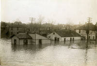 Flooding as viewed from Hickory StreetNorthward view of flooding taken from the Hickory Street School, formerly located at 501 Hickory Street in Dayton. Downtown Dayton is visible in the upper righthand corner.