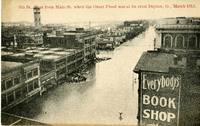 Flood waters at their crest on Fifth StreetPostcard showing a view of Fifth Street looking west from Main Street, showing the flood waters when the flood was at its crest on March 16, 1913. Transcript on back reads 'Kraemer Art Cincinnati Postcard' 5th St, West from Main St, when the Great Flood was at its crest Dayton, O., March 1913.