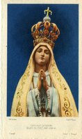 Our Lady of Fatima holy cardHoly card depicting the appearance of the Virgin Mary to the three children at Fatima. The back of the card contains a prayer to Our Lady of Fatima. This card was distributed by Father Joseph Cacella of the Sodality of Reparation to the Immaculate Heart of Mary.